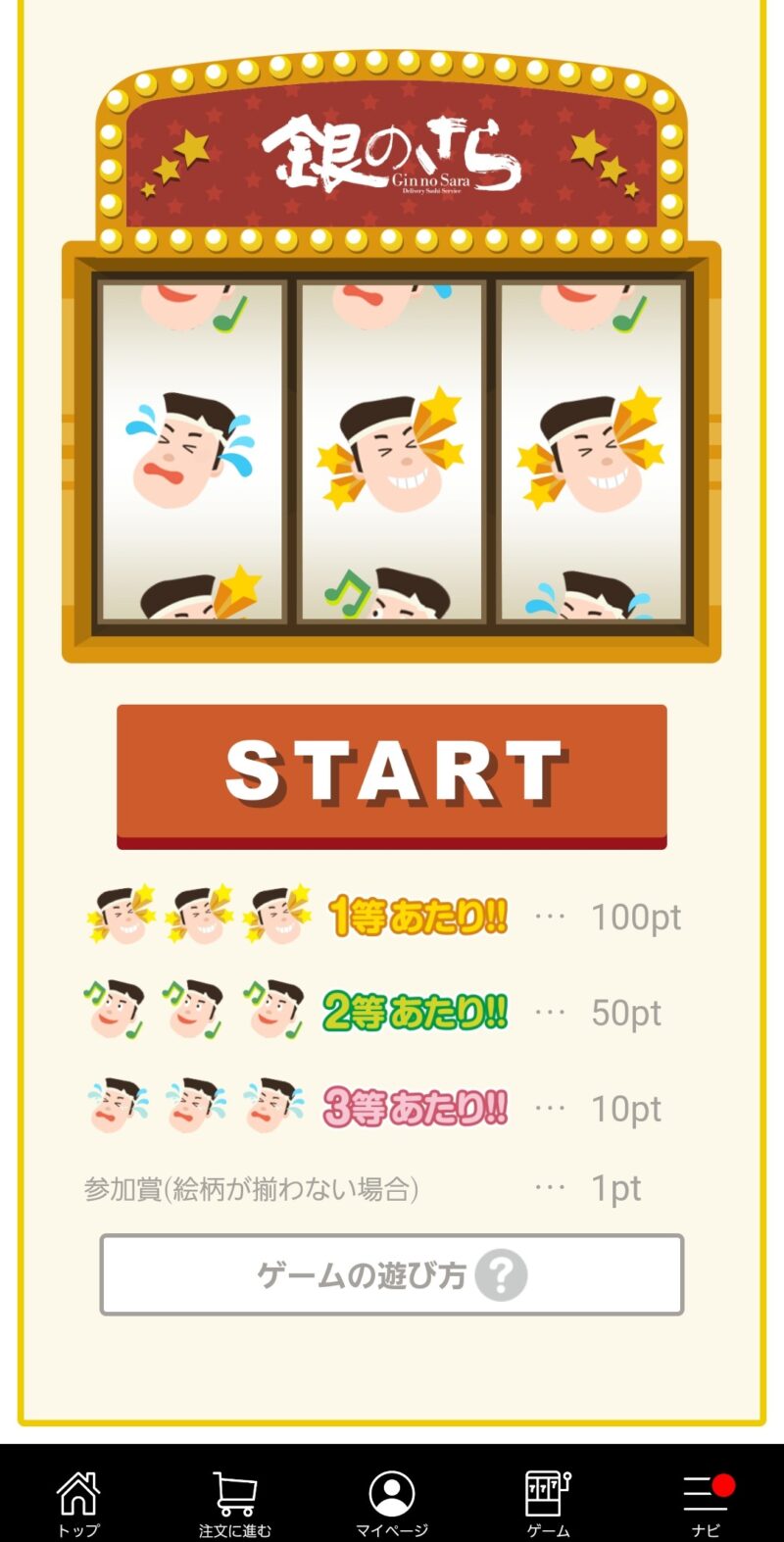 「銀のさら」「すし上等」「釜寅」にはそれぞれスマホアプリがあり、それぞれに「ゲーム」と呼ばれる機能があります。