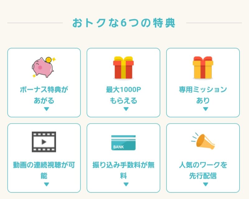 1月のワーク実施分を最終日まで貯めて登録後に開封することで、未加入に比べて10倍以上のポイント獲得を得ることができます。